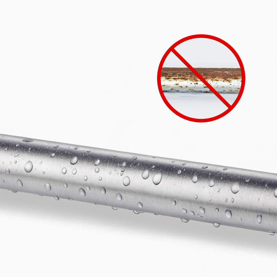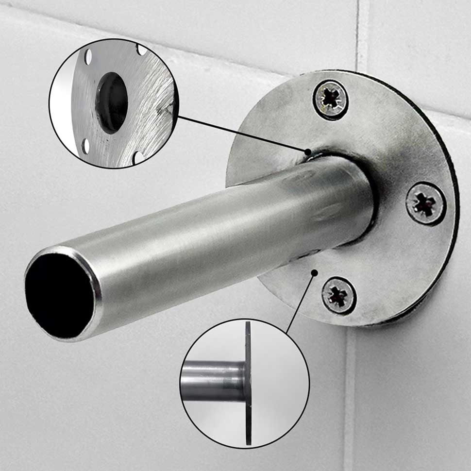 Штанга карниза изготавливается без стыков и соединений из цельной трубы диаметром 25 мм с толщиной стенки 1 мм из высококачественной полированной нержавеющей стали марки AISI 201, AISI 304 и их Российских аналогов 08Х18Н10, 12Х15Г9НД ГОСТ 5632. Крепление карниза сварено аргоном из двух частей – штифта и опорной пластины. Штифт изготавливается из трубы диаметром 23 мм с толщиной стенки 1,5 мм из нержавеющей стали марки AISI 304 и её Российского аналога 08Х18Н10 по ГОСТ 5632. Опорная пластина крепления карниза изготавливается из листовой нержавеющей стали толщиной 2 – 3 мм и диаметром 60 мм марок AISI 201, AISI 304 и их Российских аналогов 08Х18Н10, 12Х15Г9НД ГОСТ 5632. По ТУ 25.99.11–001–19885372–2019 выдерживаемая нагрузка не менее 25 кг. Отражатель изготавливается диаметром 69 мм из листовой нержавеющей стали толщиной 0,5 мм марки 08Х18Н10 по ГОСТ 5632.